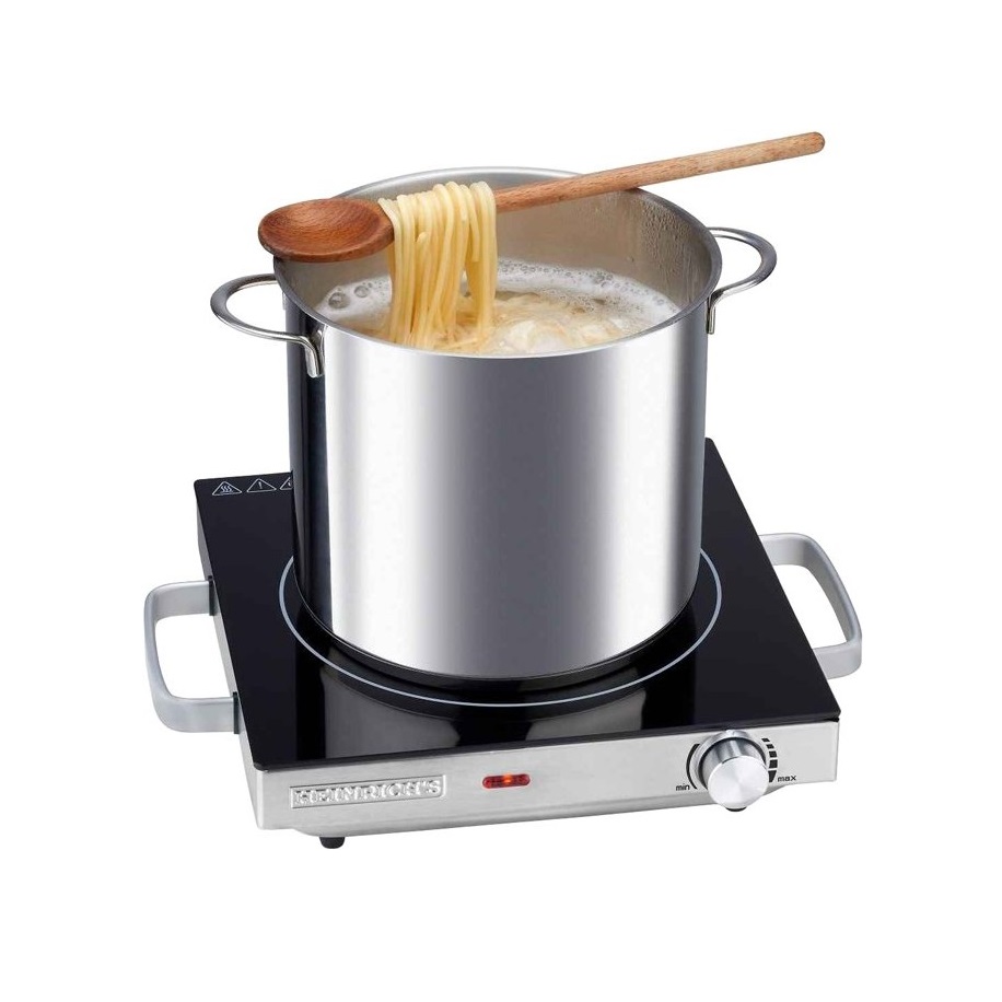 طراحی صفحه اجاق تک شعله هنریچ مدل Heinriches HEK 8695  از ترکیبی شیشه و سرامیک می باشد. جنس این صفحه به گونه ای طراحی شده است که در مقابل ضربه و حرارت بسیار مقاوم بوده و همچنین کامل ضد خش می باشد. هم چنین اجاق تک شعله هنریچ 8695 مجهز به ترموستات تنظیم حرارت می باشد. بدین معنی که متناسب با نوع عملکرد و همچنین نوع غذای مورد نظر می توان توان گرمایی خروجی یا همان دمای خروجی را تنظیم نمود.