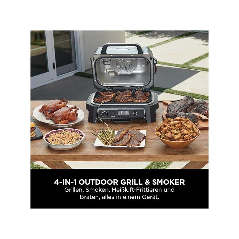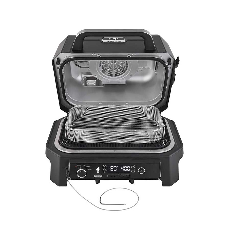 گریل باربیکیو برقی نینجا مدل OG850 با فناوری woodfire و ایجاد طعم دودی و آتشی اصیل امکان آشپزی لذت بخش در فضای باز، باغ و حیاط را فراهم می کند. این گریل باربیکیو چند کاره با 4 عملکرد گریل کردن، سرخ کردن با هوا، پختن و دادن طعم دودی باربیکیو بسیاری از نیازهای شما در امر آشپزی را به بهترین نحو پوشش می دهد. برای استفاده از این گریل باربیکیو ninja به گاز و ذغال چوب نیازی نیست و با برق کار می کند.