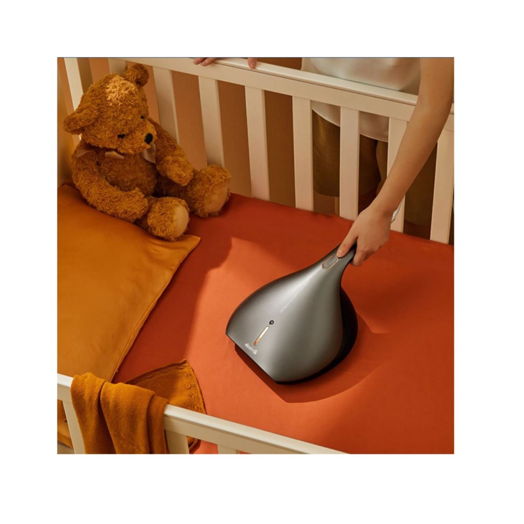 در قسمت جلویی یک چراغ نشانگر وجود دارد که وضعیت و مود دستگاه را نشان میدهد. همچنین در این قسمت یک نشانگر میزان پر بودن مخزن تعبیه شده است. در قسمت زیرین دریچه مکنده اصلی، دریچه خروجی باد گرم و نور UV وجود دارد. همچنین به لطف دو عدد چرخ در طرفین دستگاه، جابجایی جاروبرقی مایت و گرد و غبار Deerma EX919 بر روی ملحفه، تشک، بالش و سطوح مختلف به آسانی انجام میشود.