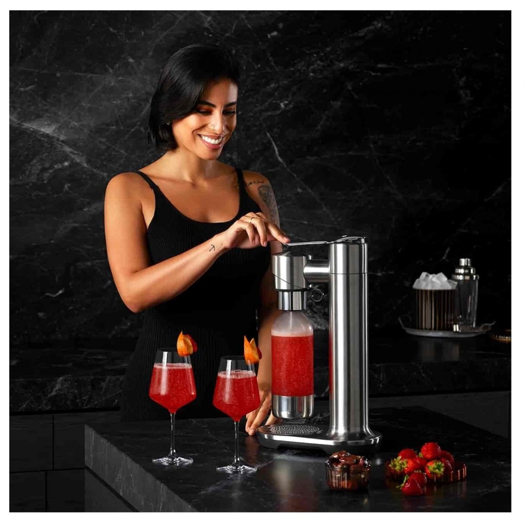 به همراه دستگاه، یک بطری ۱ لیتری از جنس پلیکربنات فودگرید عرضه میشود که در برابر فشار گاز بسیار مقاوم است. این بطری قابل شستوشو بوده و برای استفاده مجدد طراحی شده است.
