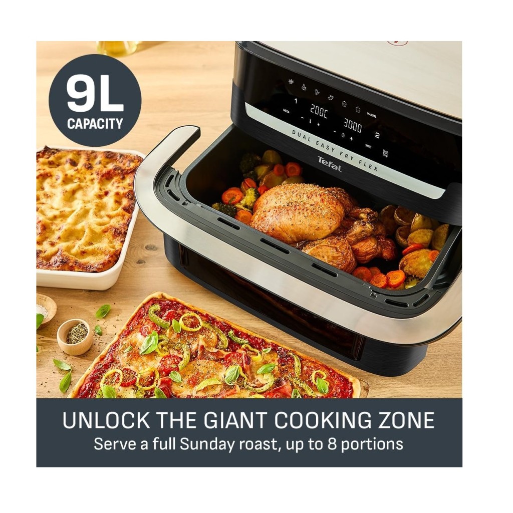 همچنین، به لطف قابلیت FlexCook Divider، میتوانید این دو محفظه را به یک سینی بزرگ تبدیل کنید تا مواد حجیمتری مثل مرغ کامل یا لازانیا در یک نوبت بپزید.