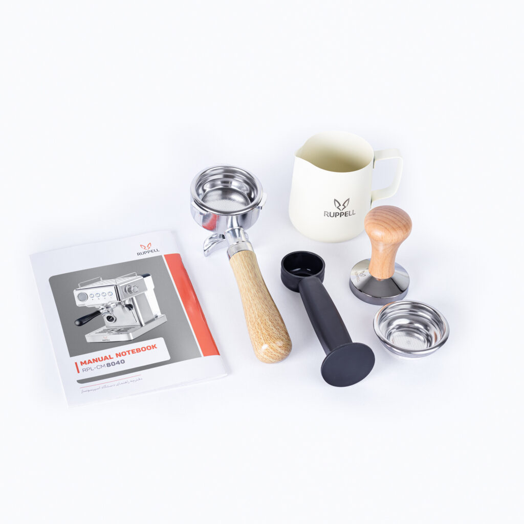 | اقلام همراه | تمپر فلزی سایز 58 تمپر و پیمانه پلاستیکی فیلتر تک اسکوپ فیلتر دو اسکوپ یک عدد پیچر استیل 350 میلیلیتری دفترچه راهنمای فارسی |