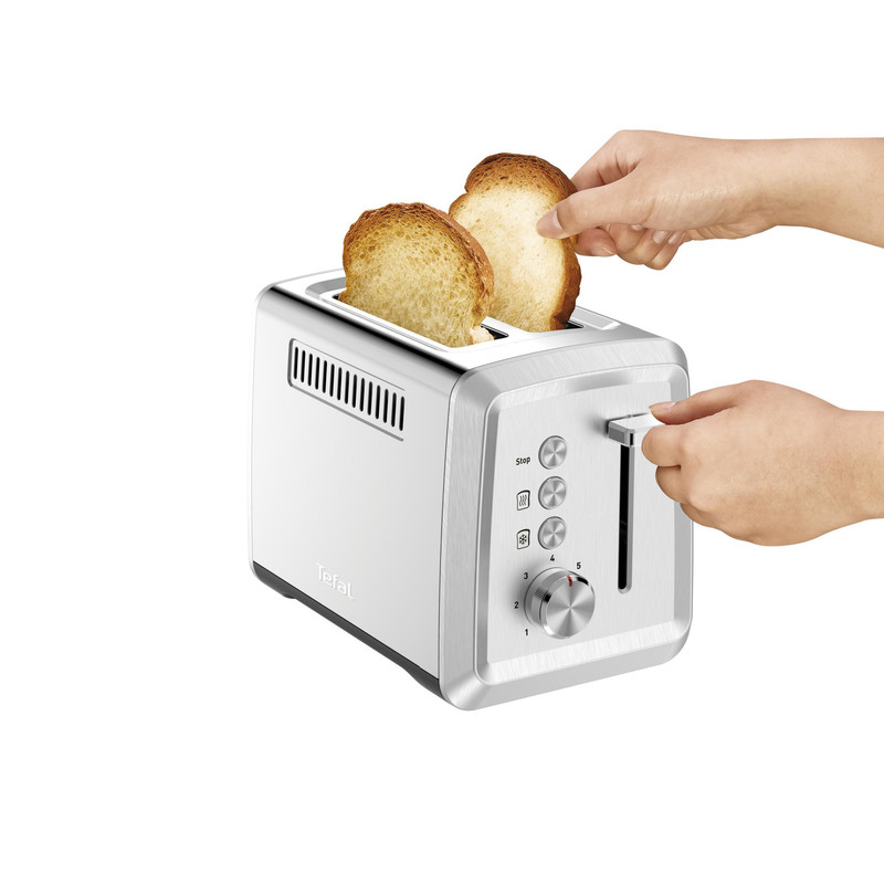 نقد و بررسی توستر نان تفال مدل TT321D10 تفال یکی از معتبر ترین و خوش نام ترین کمپانی های تولید لوازم خانگی برقی بوده که در ساخت محصولاتش از بهترین کیفیت و درجه یک ترین متریال استفاده می کند، به همین دلیل است که بیشتر افراد در هنگام خرید لوازم خانگی، اولین انتخابشان محصولات برند تفال است. یکی از همین محصولات که کمپانی تفال به تازگی آن را تولید و روانه بازار کرده، توستر نان تفال TT321D10 می باشد که ما در ادامه قصد داریم به نقد و بررسی کامل آن بپردازیم. توستر نان مدل TT321D10 از کاربردی ترین محصولات برند تفال بوده که به تازگی تولید و روانه بازار شده است و شما با استفاده از آن به راحتی می توانید انواع نان های مختلف را تست کرده و از میل کردن نان تست شده به عنوان صبحانه و یا یک میان وعده سالم نهایت لذت را ببرید. این توستر با توان مصرفی 850 وات به راحتی از پس گرم کردن، یخ زدایی و برشته کردن بر می آید و مجهز به تمام عملکرد هایی است که شما برای تضمین نان تست به روشی که دوست دارید، آن را تست کنید. سطح دما یکی از اصلی ترین دغدغه های افراد در هنگام خرید توستر، انتخاب یکی توستر با سطح دما های مختلف است. توستر نان تفال TT321D10 دارای ترموستات قابل تنظیم 7 حالته بوده، که به شما امکان می دهد قهوه ای شدن نان را با سلیقه همه تنظیم کنید. به علاوه این محصول دارای 3 عملکرد با نشانگر نور بوده که شامل: توقف: فوراً نان تست را متوقف کند. یخ زدایی: برای برشته کردن مستقیم نان یخ زده بدون نیاز به یخ زدایی. گرم کردن مجدد: برای گرم کردن مجدد نان هایی که قبلاً تست شده اند. نقد و بررسی توستر نان مدل TT321D10 تفال